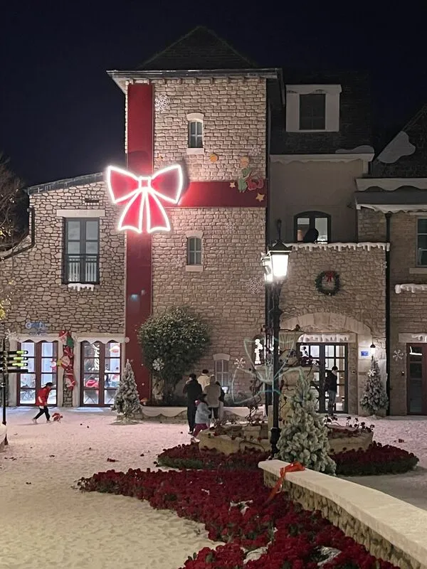 回飯店後跑去照相,之前因應聖誕節還留有人造雪的場景,但很多地方無法上樓拍照,問了一下是因為有活動所以暫時封掉,有點可惜。